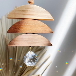 Modern Wood Suncatcher | Crystal Prism Rainbow Maker, Car Ornament