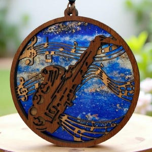 Handmade 6” Saxophone Suncatcher | Wood & Acrylic Faux Stained Glass | Music Lover Gift | Musician Decor | Music Teacher Christmas Gift