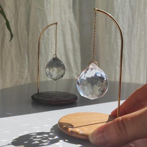 PENDULUM • Tabletop Suncatcher • Crystal Rainbow Maker • Brass and Pine Wood • Handmade in France • Feng Shui Boho Meditation Gift